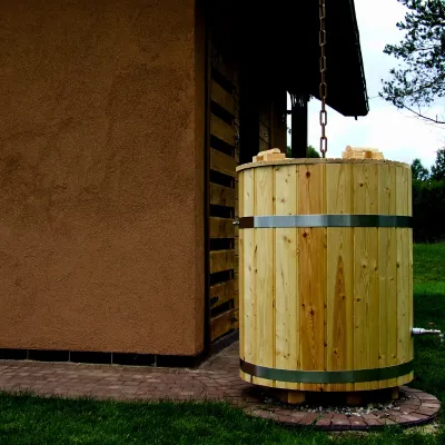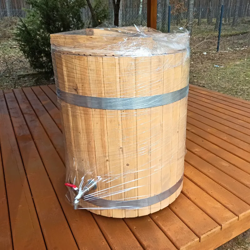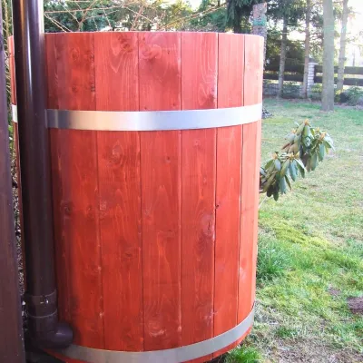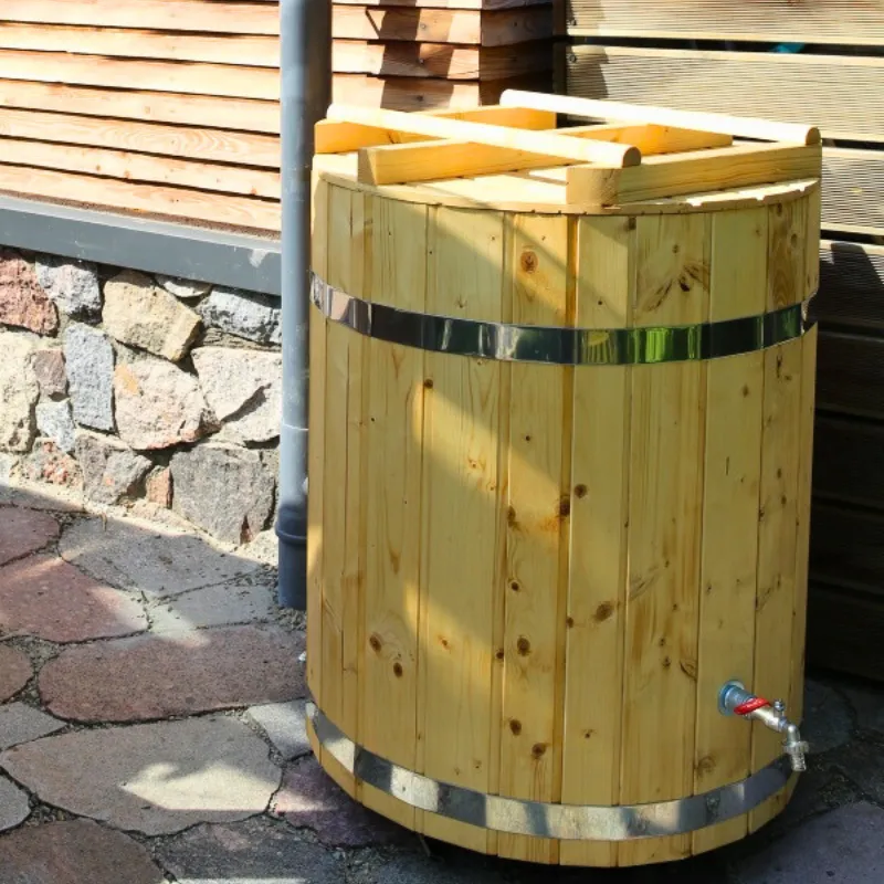 zbieraj wodę opadową w pięknych, drewnianych zbiornikach na wodę deszczową. Beczki wyposażone w kranik i pokrywę. Ekologia, piękno i wygoda w jednym produkcie.